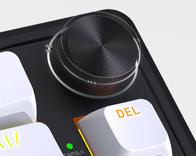 - Multimedia control knob for volume, playback, or custom functions