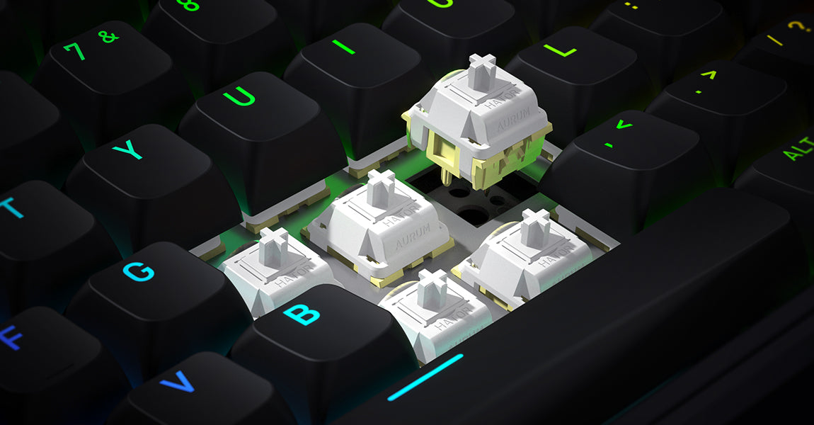 HATOR Aurum Sterling linear speed switches deliver fast and effortless actuation, giving you a highly responsive and precise gaming experience. The optimized POM housing and stem design minimizes friction, ensuring a smooth linear keystroke with a deep, muted sound signature. With a shortened actuation point, each press registers earlier and more predictably, providing a comfortable and dynamic feel for both gaming and typing.